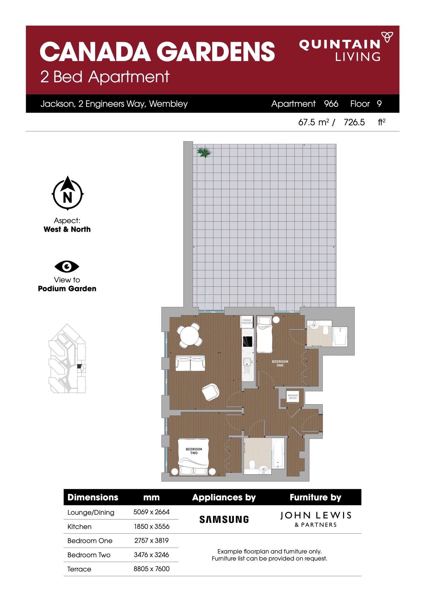 This chic 2 bedroom apartment is on the 9th floor of Jackson, one of 7 beautiful buildings that make up Canada Gardens. This urban country-inspired oasis surrounds a stunning acre of gardens. It faces West & North with a private terrace overlooking the Podium Garden. Images show a similar apartment.
