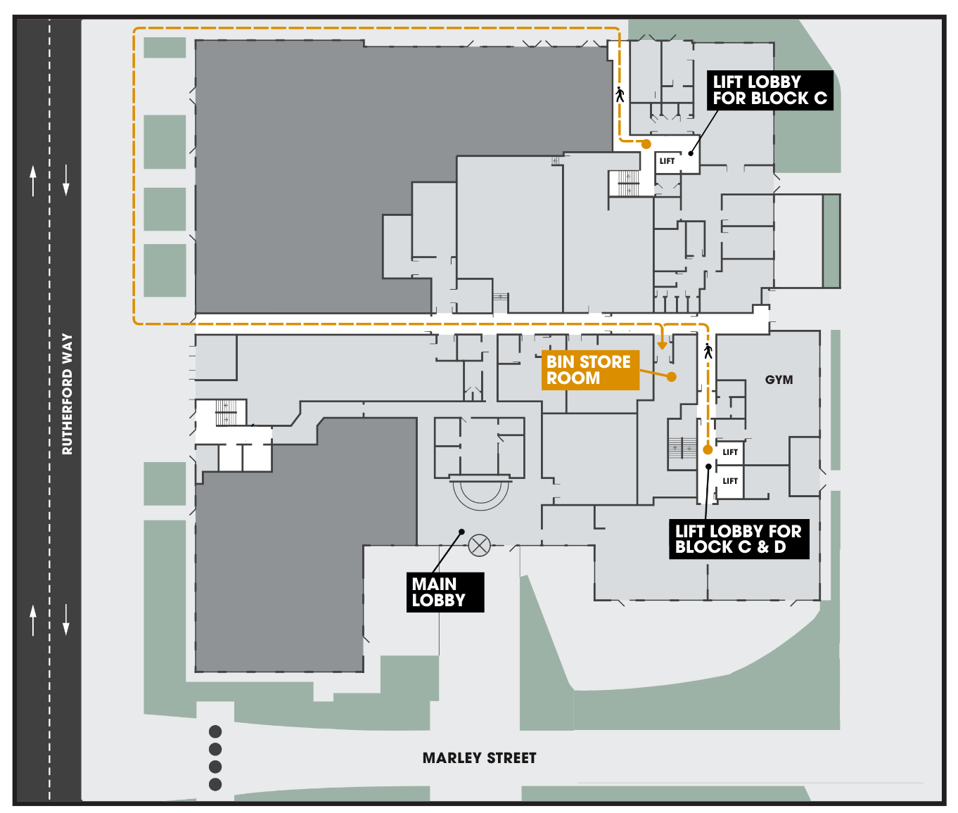 If you have any large bin bags, cardboard or boxes that you need to dispose of, we have a bin store located on the ground floor. You can find a map of how to get to it from the lifts in Block C & D.