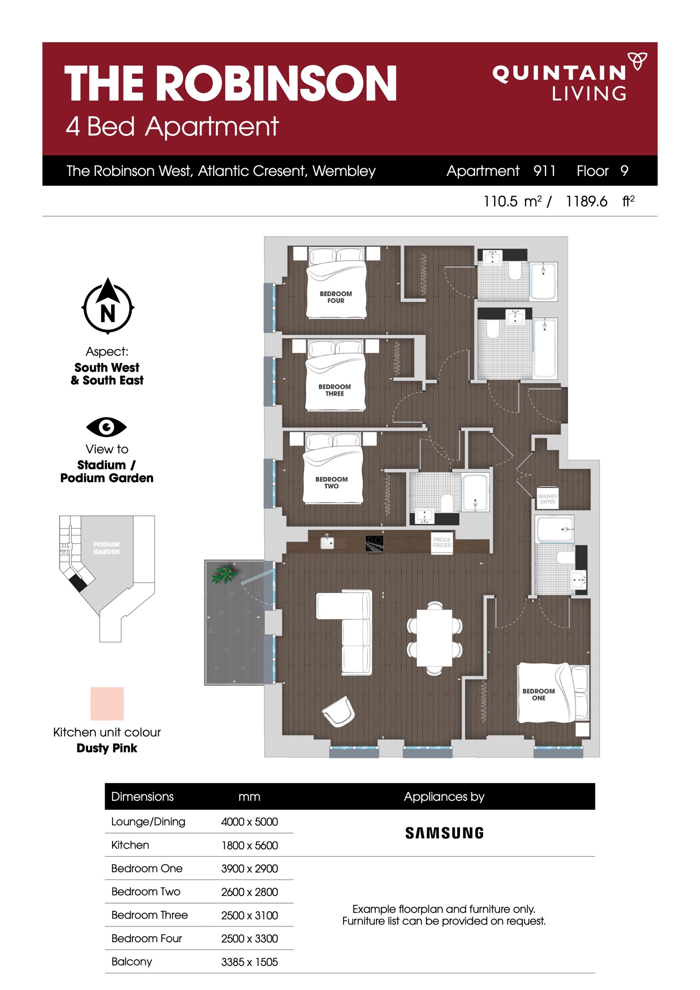 Every 4 bedroom apartment includes